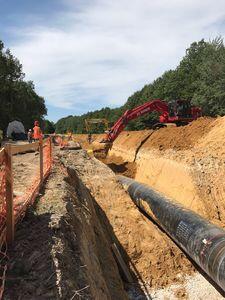 Wij verzorgden de complete voorbereiding van het tracé, inclusief het aanleggen van overbruggingen en toegangswegen en het wegzetten van teelaarde. Verder verzorgden wij het graven en het aanvullen van de sleuf, herstel van wegen en compleet herstel van het tracé plus omliggend terrein in oorspronkelijke staat.