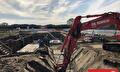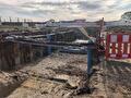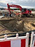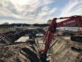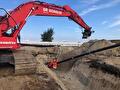 Na de oplevering van de hoogspanningsmoffen dichtten wij de kuipen gedicht en brachten wij de bovenkant van het maaiveld weer in haar oorspronkelijk situatie terug. Voor het plaatsen van damwand zetten wij onze Sennebogen 653 E in.